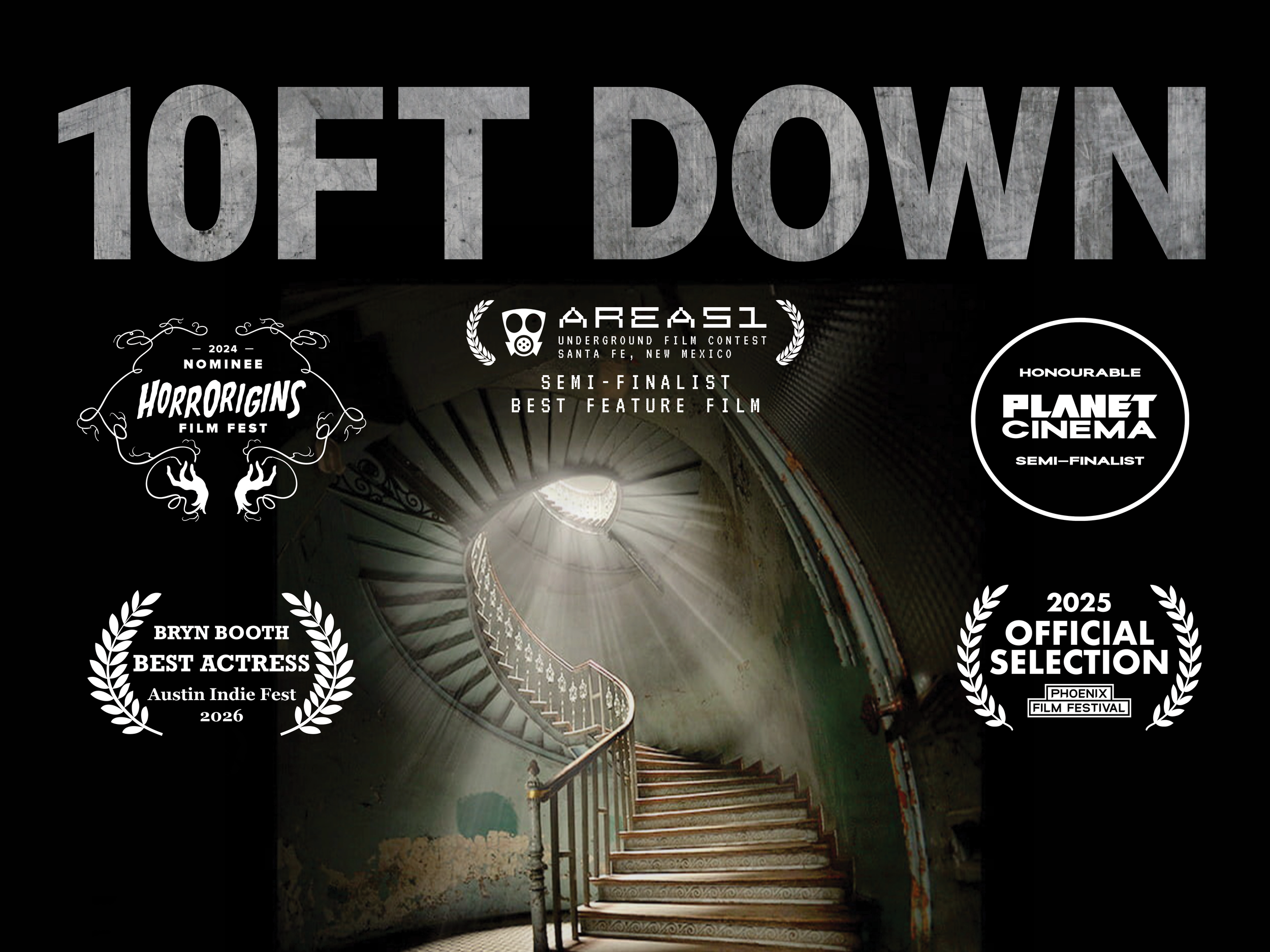 Bryn Booth was just awarded Best Actress for her role in 10 Feet Down from the Austin Indie Film Festival! See below for the laurels the film has received from festivals!