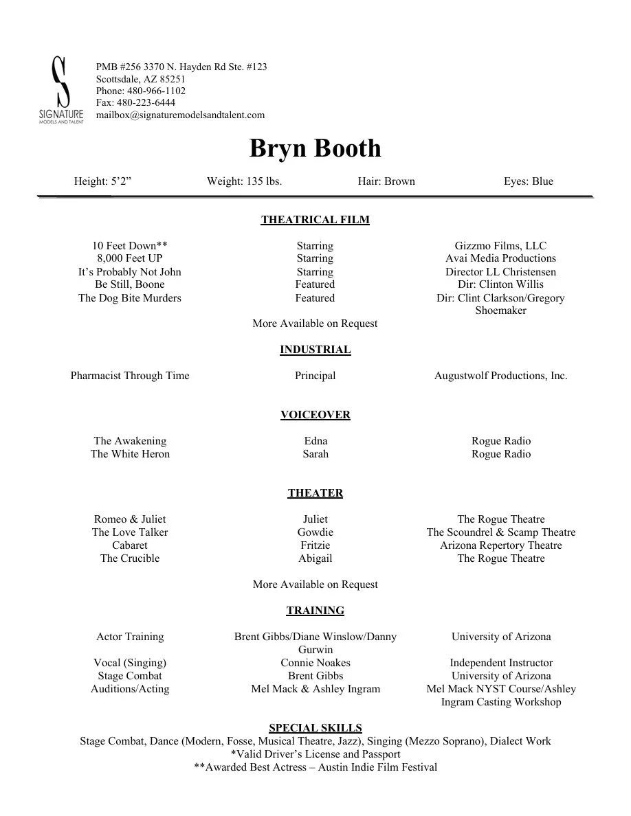 Bryn Booth is a Tucson-based professional actor who is also skilled in writing, stage combat, dancing, and singing. She is a member of the resident acting ensemble of the Rogue Theatre where she has built her resume with powerful and versatile roles. Bryn has been seen in many theatres across Tucson including the Scoundrel and Scamp Theatre where she was given the honor of starring in their premiere show.